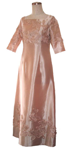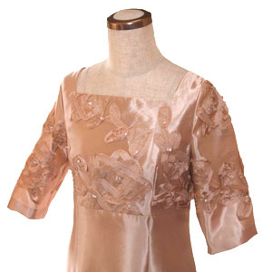 リボンワークを施したサテンのドレス