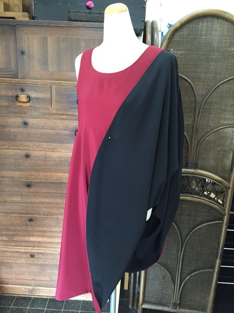 裾を持つと赤い子供服から一転、ダークなイメージの衣装に